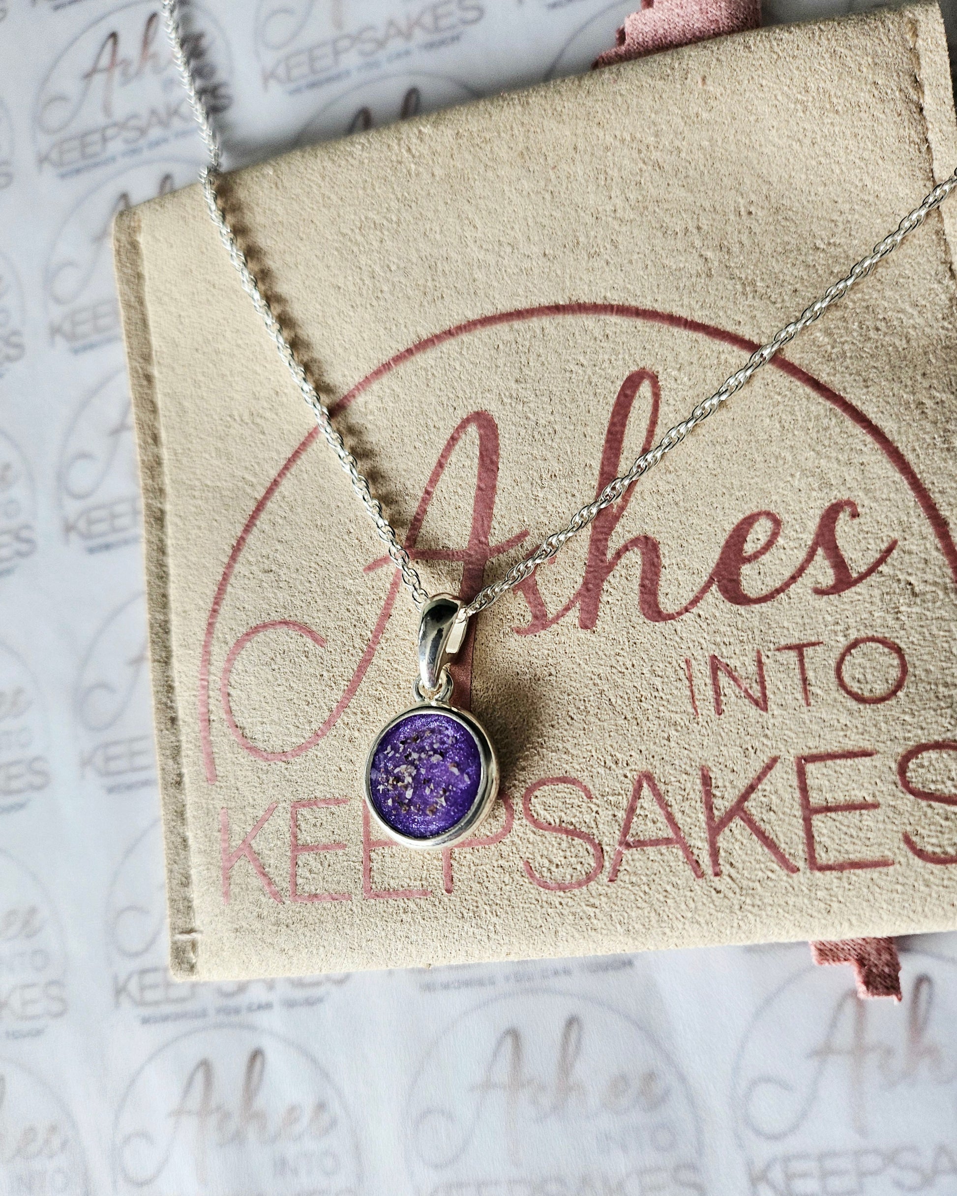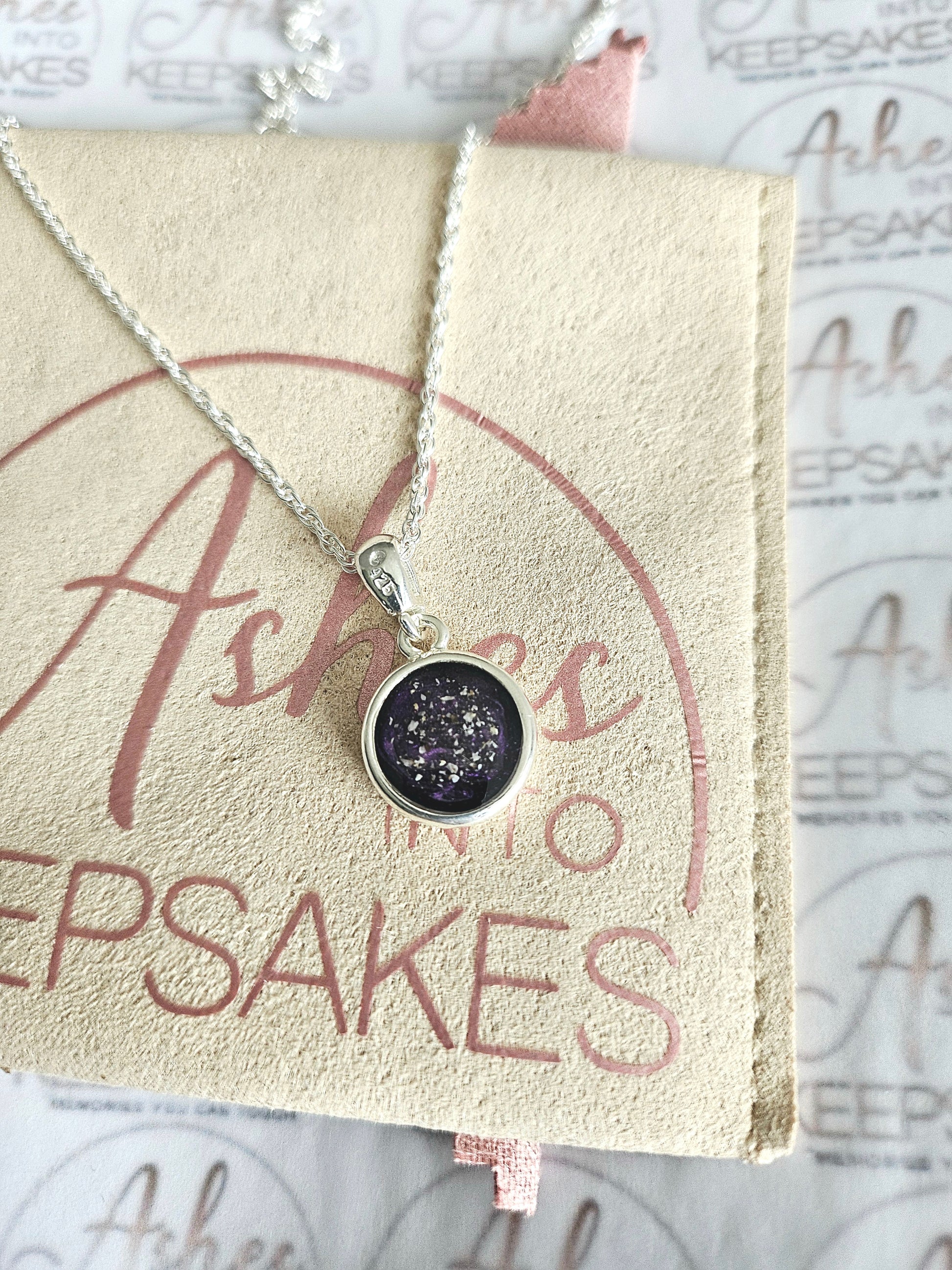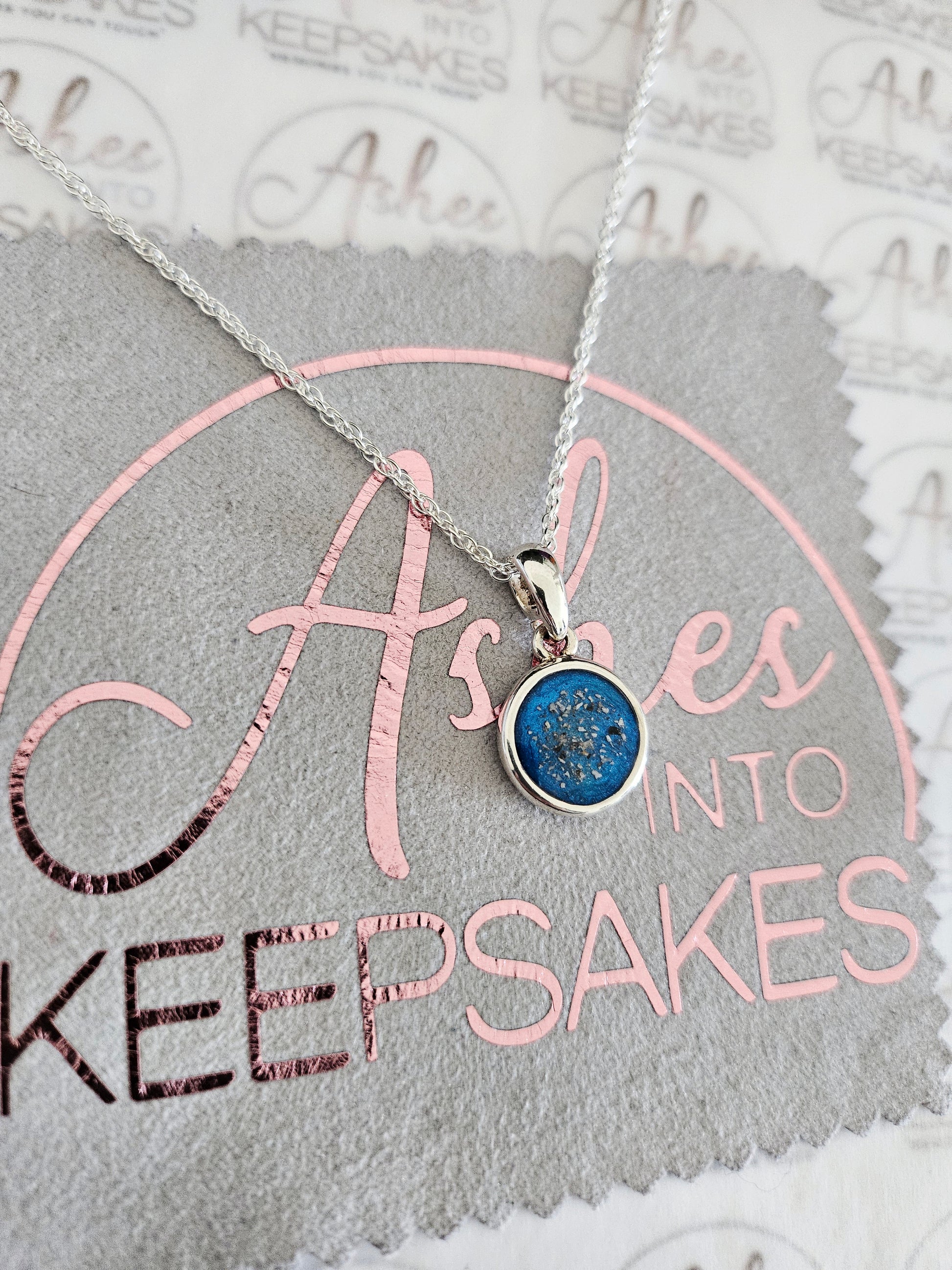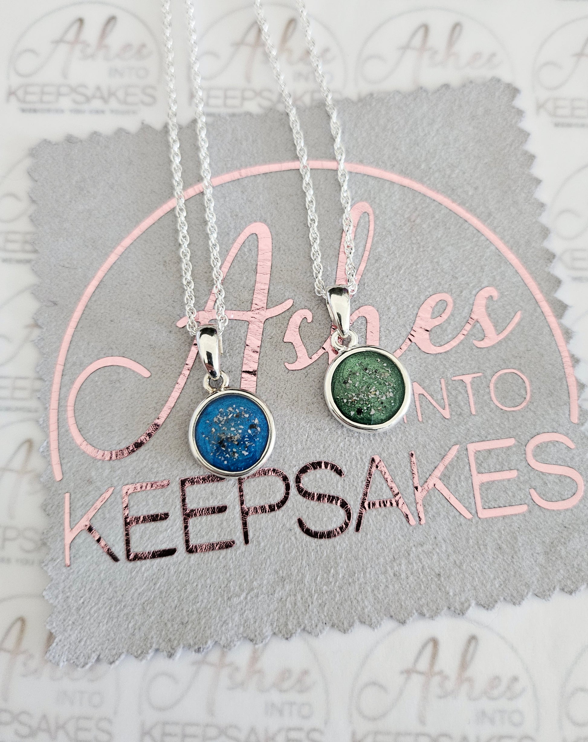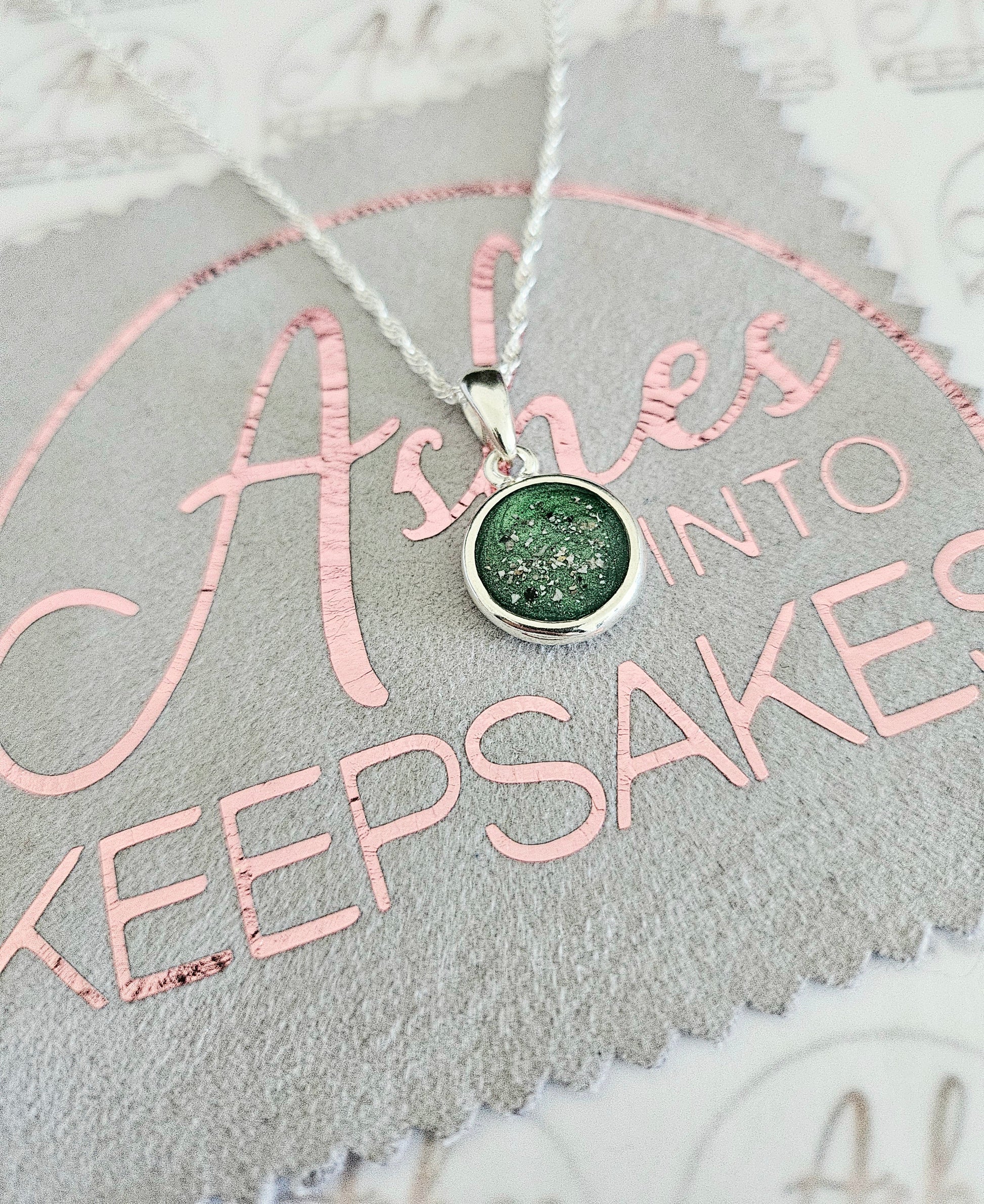 Double Sided Circle Pendant These are 925 Sterling silver. Choice of two colours available and can include your loved ones ashes, hair or pets fur. All items come with authenticity certificate with your loved ones name on and creation date. Add a touch of extra sparkle with the option of real diamond dust added to your jewellery, this is placed in the top layer of the stone and adds a subtle sparkle. We estimate to have all orders hand crafted and shipped out within 3-5 weeks of receiving your ashes or hair. Once order has been placed we will send out a pack for you to send your ashes or hair to us, any unused ashes or hair will be returned to you with your order. The completed product will be expertly buffed to create a mirror shine finish, and due to the range of colours we have to choose from no two resin gems are ever the same. Ashes into keepsakes is committed to each one of our customers to provide the best service and care. Your loved ones ashes, hair or even pets fur will be handled with the utmost respect and care, and any unused will be sealed and returned to you with your order.
