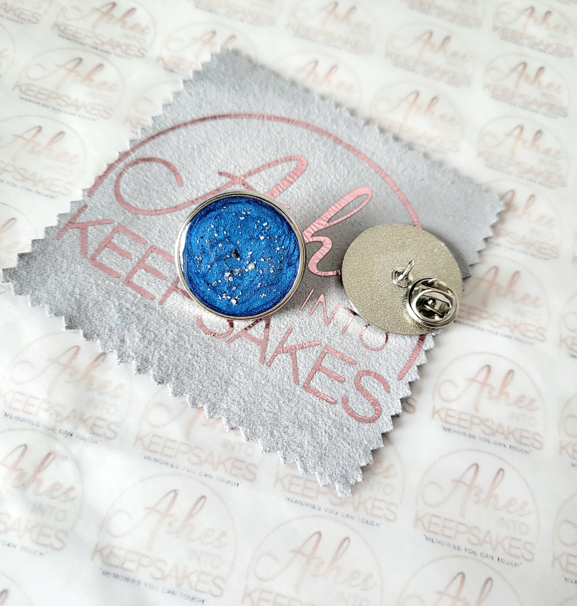 Our pins are hand crafted to order and we estimate all orders to take around 3-5 weeks from receiving your loved ones ashes or hair. All items come with authenticity certificate with your loved ones name on. Once you have placed and order with Ashes into keepsakes we will send out a pack for you to send your ashes, hair or pets fur back to us, any unused will be returned to you with your order. The completed product will be expertly buffed to create a mirror shine finish, and due to the range of colours we have to choose from no two resin gems are ever the same. Ashes into keepsakes is committed to each one of our customers to provide the best service and care. Your loved ones ashes, hair or even pets fur will be handled with the utmost respect and care, and any unused will be sealed and returned to you with your order. Your orders will be sent to you with a special authenticity certificate with your loved ones name on and the creation date, then hand signed by our designer.